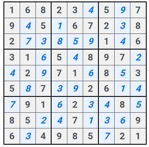 - Her 3x3'lük bölgede 1'den 9'a kadar tüm rakamlar bir kez yer almalıdır.